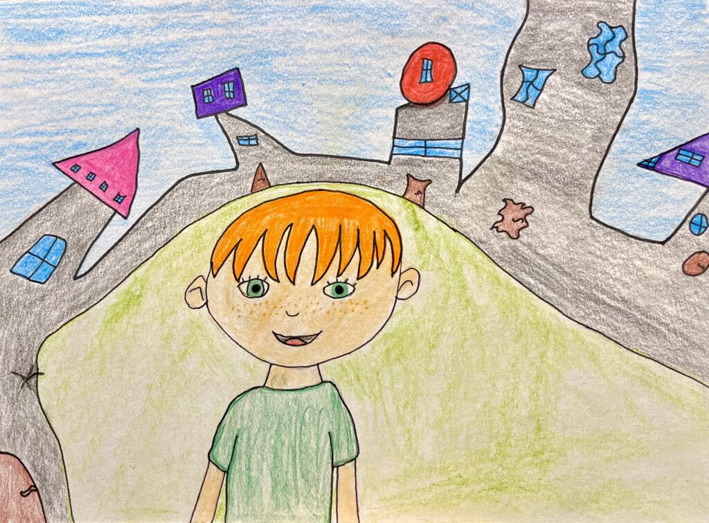 Напуженый Дінас имив ся за уха, а хлопчища ся маймай зарегонили — издурили новинького. Дінас ся тоже засміяв — любили му ся сякі фіґлі. Ун вонь подумав, як туй ме інтересно тай весело.